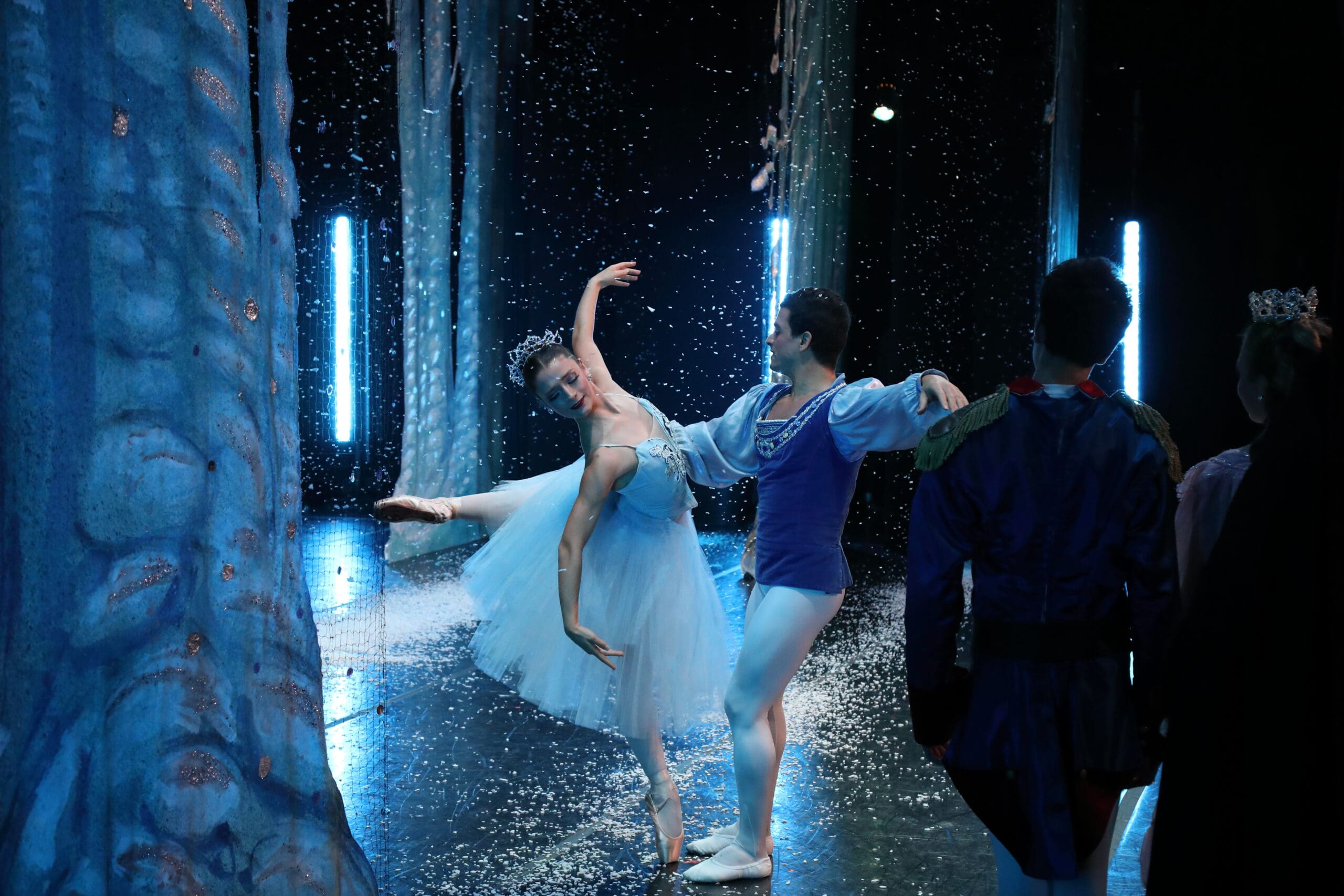 “My dad has been with The Nutcracker since the very beginning—building sets, handpicking backdrops, perfecting every floor mark and lighting cue. My favorite trick of his is the silk backdrop that drops behind the Snow Queen mid-dive, just as snow dusts her head. It looks effortless, but backstage it’s all about staggered hooks and precise timing—too many hooks and it sticks, too few and it drops too soon. For forty years, the ‘silk fall’ has been his litmus test of a good show. Last year, when he missed his first performance due to heart failure, I recorded it from center stage to show him: the silk still fell.”