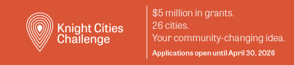 “The most powerful ideas come from people building solutions rooted in their lived experience,” said Francesca de Quesada Covey, vice president for community impact at Knight Foundation. “The Knight Cities Challenge is about giving those ideas — from early sparks to bold experiments — the capital, connections and support they need to grow, scale and strengthen communities across the country.”